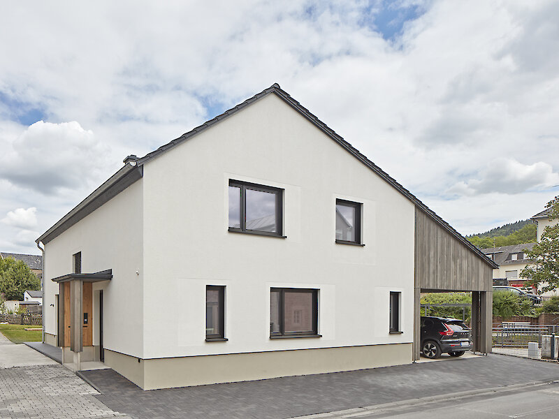 Im alten Ortskern von Schweich hatte die Bauherrschaft ein wunderschönes Grundstück für ihr neues Heim: direkt am Bach, in einer ruhigen Seitenstraße, und dennoch zentral gelegen. Einziges Problem: Wie passt das Haus in das kleine und beinahe dreieckige Baufenster?